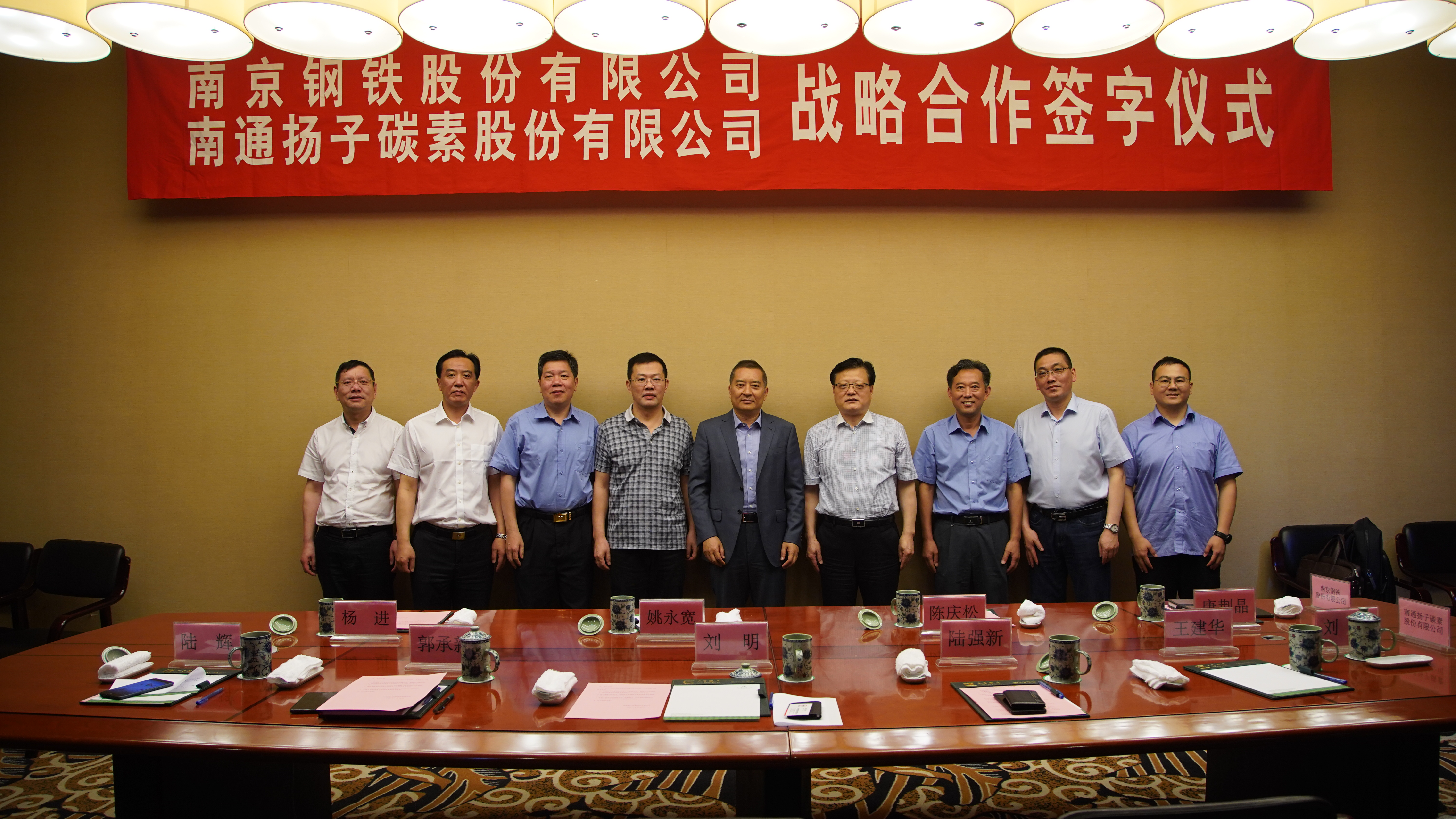5月30日,南京鋼鐵股份有限公司常務(wù)副總裁姚永寬協(xié)采供中心主任陳慶松等一行來通參加與南通揚(yáng)子碳素的戰(zhàn)略合作協(xié)議簽訂儀式,儀式在文峰飯店長江廳會議室舉行。南通產(chǎn)控集團(tuán)總經(jīng)理陸強(qiáng)新,揚(yáng)子碳素黨委書記、董事長劉明,黨委副書記、總經(jīng)理郭承新,副總經(jīng)理、財(cái)務(wù)總監(jiān)王建華,紀(jì)委書記陸輝等公司領(lǐng)導(dǎo)參加了本次會議。