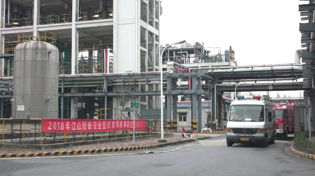 2018年南通市突發(fā)環(huán)境事故應(yīng)急演練在江山股份舉辦
