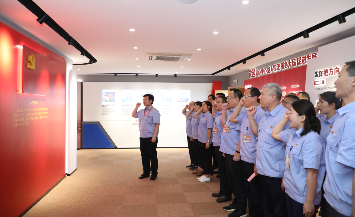 在公司黨委委員、副總經(jīng)理毛繼潤(rùn)帶領(lǐng)下,參加活動(dòng)的全體黨員面向黨旗,莊嚴(yán)宣誓,重溫入黨誓詞。公司黨委為現(xiàn)場(chǎng)7月入黨的12名同志過(guò)政治生日,贈(zèng)送政治生日賀卡和圖書(shū)。公司黨群紀(jì)檢部副部長(zhǎng)金周玉帶領(lǐng)參觀活動(dòng)中心。黨員們?cè)诹疂嵑弦?guī)承諾墻上簽名。