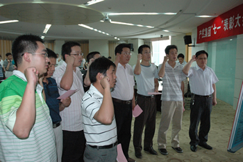 6月30日,集團(tuán)黨委召開紀(jì)念“七一”暨表彰大會(huì),集團(tuán)領(lǐng)導(dǎo)班子成員、所屬各基層黨組織負(fù)責(zé)人、優(yōu)秀黨員及優(yōu)秀黨務(wù)工作者代表70余人出席。 會(huì)上,集團(tuán)黨委授予南通科技黨委、江山股份黨委、石化總支、離休支部以及產(chǎn)控直屬支部“五好”黨組織稱號(hào),表彰了錢永康等47名優(yōu)秀黨員和陶坤山等23名優(yōu)秀黨務(wù)工作者。 南通科技黨委代表“五好”黨組織做了《緊扣中心服務(wù)大局、凝心聚力發(fā)揮作用》的交流發(fā)言,優(yōu)秀黨務(wù)工作者及優(yōu)秀黨員代表也結(jié)合各自實(shí)際,介紹了圍繞經(jīng)濟(jì)工作、創(chuàng)新開展黨建工作的經(jīng)驗(yàn)和堅(jiān)定信念、立足本職、爭(zhēng)當(dāng)優(yōu)秀黨員的先進(jìn)事跡。 集團(tuán)黨委書記、董事長陳照東代表黨委作報(bào)告。他總結(jié)了2009年黨建工作,通報(bào)了今年上半年集團(tuán)經(jīng)濟(jì)運(yùn)行和主要工作情況,以“突出重點(diǎn),全面完成年度目標(biāo)任務(wù)”為題就下半年經(jīng)濟(jì)工作提出要求,以“開展創(chuàng)先爭(zhēng)優(yōu)”和“爭(zhēng)做勤廉表率”為重點(diǎn)就下一階段黨建工作作出部署。 會(huì)議號(hào)召各級(jí)黨組織和全體黨員抓住經(jīng)濟(jì)復(fù)蘇機(jī)遇,將黨建工作與經(jīng)濟(jì)工作緊密結(jié)合,抓好基層組織和黨員隊(duì)伍建設(shè),加強(qiáng)黨風(fēng)廉政建設(shè)和監(jiān)督保障工作,為完成全年目標(biāo)、實(shí)現(xiàn)經(jīng)濟(jì)跨越發(fā)展而努力拼搏!