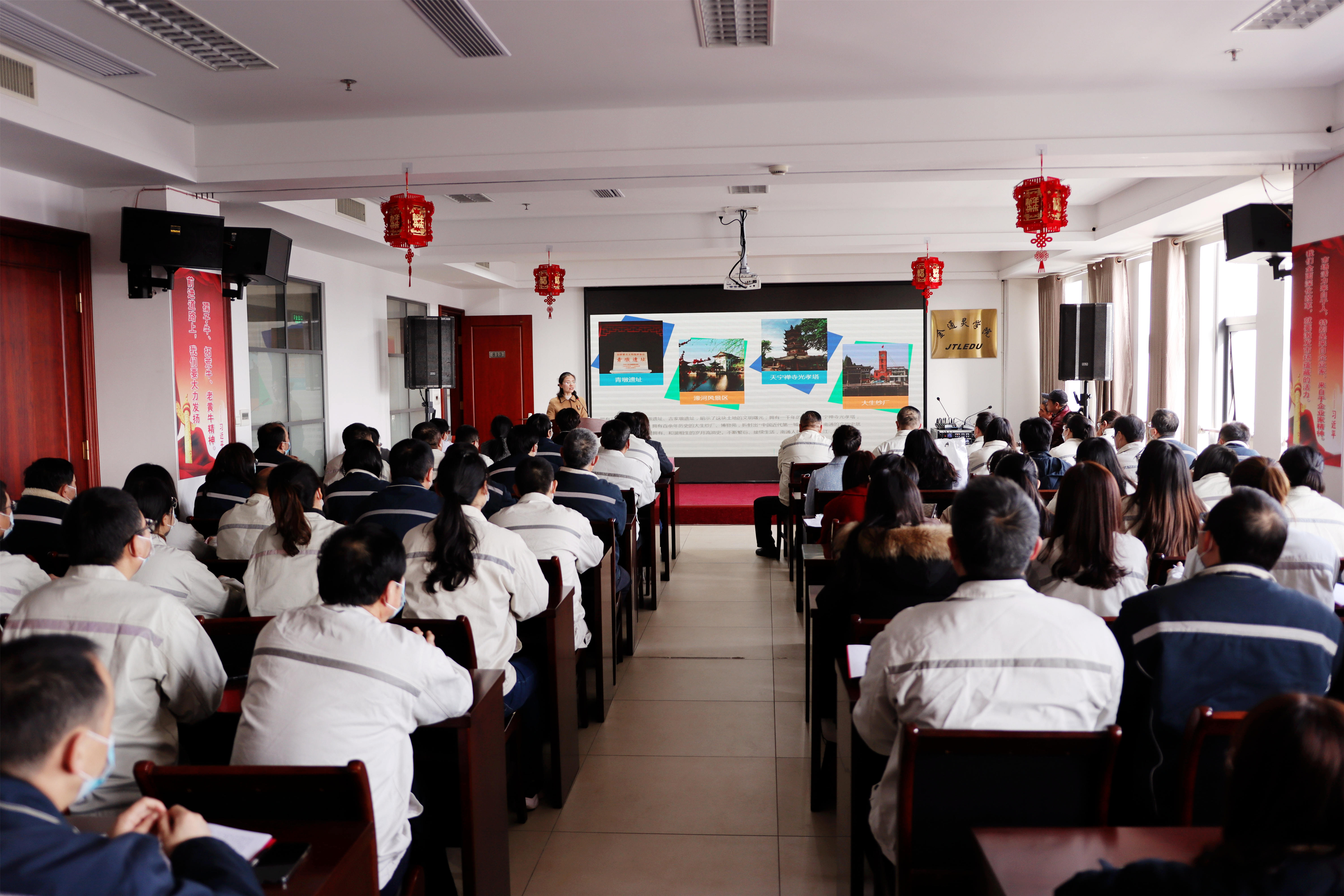 紅色的燈籠帶著節(jié)日的余溫與暖心的“習(xí)語金句”一起裝點(diǎn)著會(huì)場(chǎng)的氛圍,臺(tái)上宣講員循循善誘,為金通靈職工帶來滿滿理論“干貨”;臺(tái)下聽眾聚精會(huì)神,給宣講員們送去陣陣掌聲。2月23日下午,崇川區(qū)“學(xué)習(xí)貫徹習(xí)近平總書記視察江蘇重要講話精神”宣講團(tuán)首場(chǎng)宣講活動(dòng)在金通靈學(xué)院內(nèi)成功舉辦。