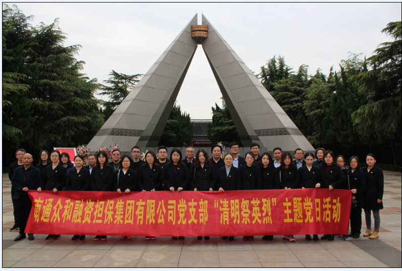 4月14日上午,眾和擔(dān)保黨支部組織全體黨員、入黨積極分子、公司領(lǐng)導(dǎo)班子成員及中層以上干部赴南通市烈士陵園和南通革命紀(jì)念館,開展 “清明祭英烈”主題黨日活動(dòng),緬懷革命英烈、傳承紅色基因,把開展黨史學(xué)習(xí)教育同弘揚(yáng)優(yōu)秀傳統(tǒng)文化有機(jī)結(jié)合。