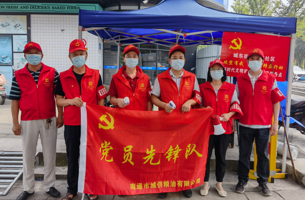 黨旗所指,團(tuán)旗所向。為充分發(fā)揮黨員先鋒模范作用,青年帶頭作用,城供公司成立了黨員先鋒隊(duì)、青年突擊隊(duì)。27日下午,張垛儲(chǔ)備庫青年突擊隊(duì)成員們利用工作外時(shí)間前往海安市雅周鎮(zhèn)興雅社區(qū),穿上紅馬夾,戴上紅帽子,為進(jìn)入小區(qū)居民測體溫、查看行程碼;公司本部青年突擊隊(duì)隊(duì)員們伴隨烈日,前往濠東社區(qū)開展除草、地面清潔等志愿服務(wù),經(jīng)過大家共同勞動(dòng),社區(qū)面貌得到了較大改善。