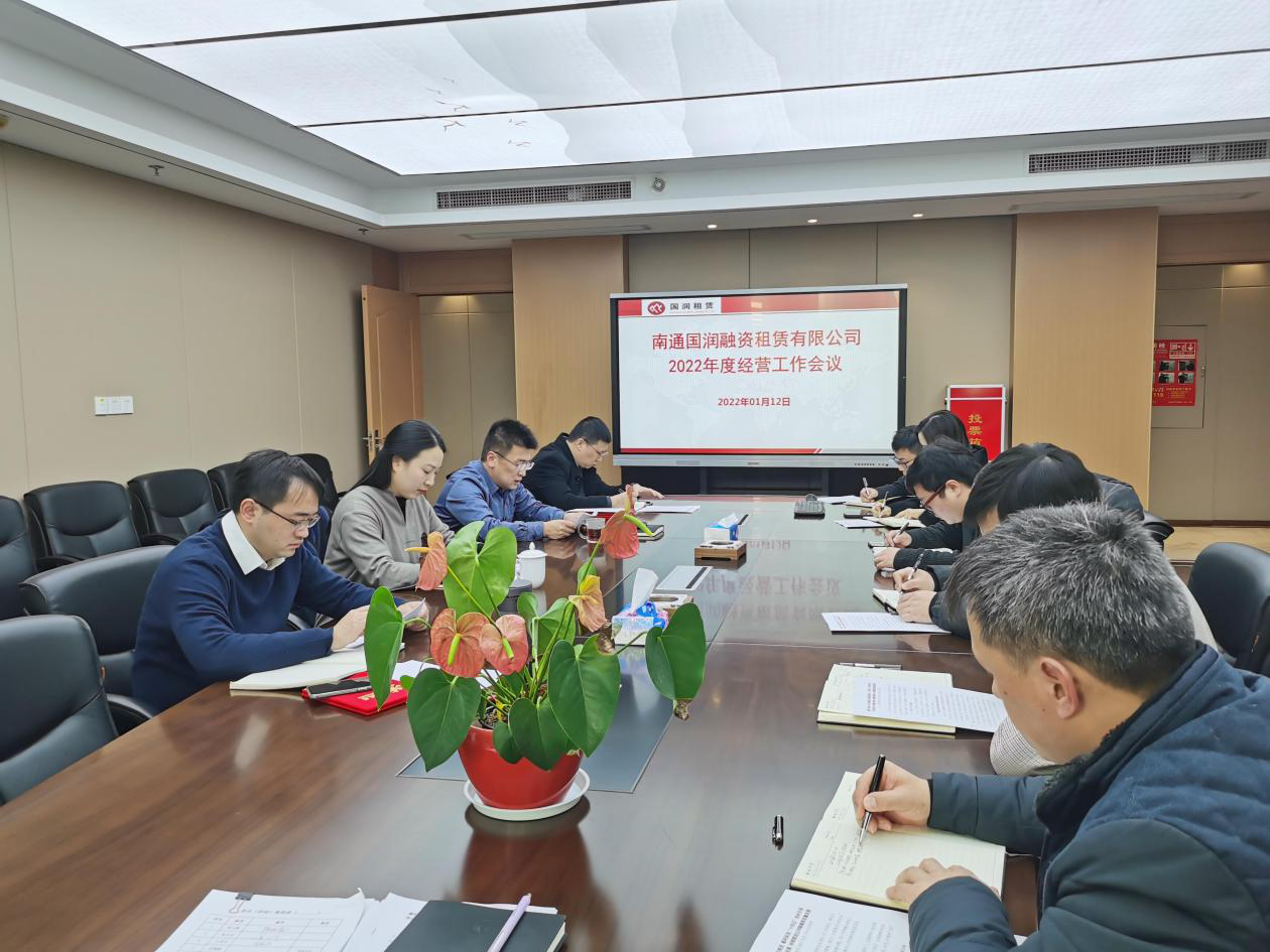 2022年1月12日,為全面復盤2021年度經營目標完成情況,有效落地2022年各項工作計劃,南通國潤融資租賃有限公司在大會議室召開了2022年度經營工作會議。產控集團副總經理陳弘穎,國潤租賃董事長陳大鵬、總經理陸健、黨支部副書記吳小兵及公司全體員工,參加了會議。