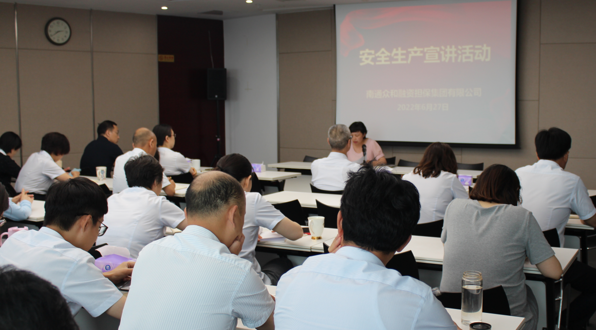 今年6月是全國(guó)第21個(gè)“安全生產(chǎn)月”,眾和擔(dān)保嚴(yán)格落實(shí)“安全生產(chǎn)月”工作要求,結(jié)合公司實(shí)際,細(xì)化完善活動(dòng)方案,圍繞“遵守安全生產(chǎn)法,當(dāng)好第一責(zé)任人”活動(dòng)主題,扎實(shí)開展系列宣貫活動(dòng),推動(dòng)安全生產(chǎn)各項(xiàng)工作走深走實(shí)。 6月27日下午,眾和擔(dān)保召開“安全生產(chǎn)月”宣講活動(dòng),公司全體員工及子公司領(lǐng)導(dǎo)班子成員共計(jì)40余人參加活動(dòng)。會(huì)上,黨支部書記李瑾傳達(dá)了產(chǎn)控集團(tuán)“安全生產(chǎn)月”專題工作會(huì)議精神,提出“提高思想認(rèn)識(shí)、落實(shí)制度規(guī)定、切實(shí)擔(dān)起責(zé)任、實(shí)現(xiàn)兩個(gè)確?!钡墓ぷ饕?。