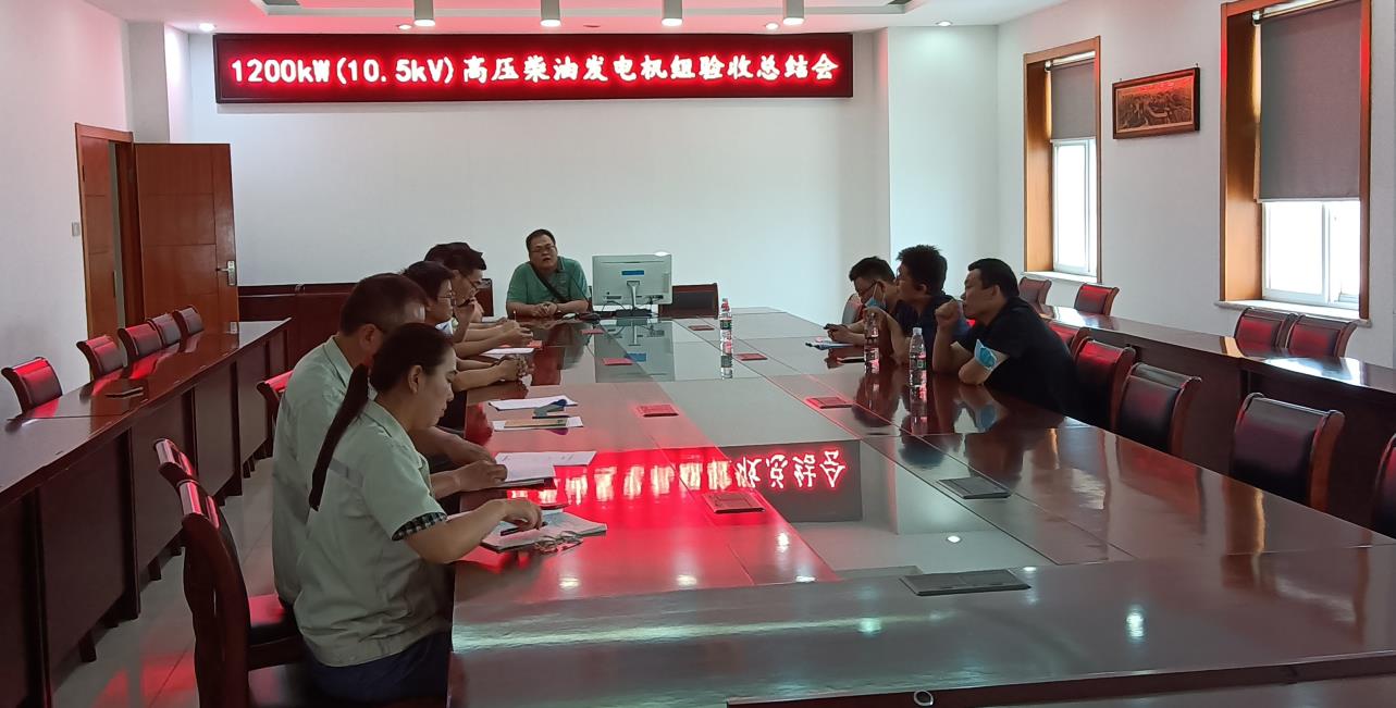 近日,泰州鋒陵特種電站裝備有限公司組織召開了1200kW(10.5kV)高壓柴油發(fā)電機組驗收總結(jié)會。參加會議的有中鐵十二局集團有限公司、中鐵第六勘察設(shè)計院集團有限公司、國機中興工程咨詢有限公司等領(lǐng)導(dǎo)和專家,以及鋒陵特電銷售、技術(shù)、生產(chǎn)、質(zhì)檢等部門主管及項目負(fù)責(zé)人。驗收專家組組長中鐵第六勘察設(shè)計院集團有限公司李浩高工主持會議。