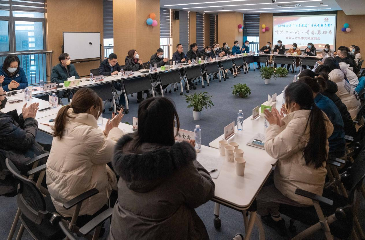 近日,精華制藥集團股份有限公司在20樓大會議室召開了迎新春“學好二十大·青春勇?lián)敗鼻嗄耆瞬潘枷虢涣髯剷?。集團黨委書記、董事長尹紅宇、集團副董事長、總經(jīng)理周云中等10位集團領導出席會議。來自全集團各個層面、各條戰(zhàn)線上的青年干部、青苗人才和團干代表等共計28人參加了會議。集團黨委副書記、紀委書記、工會主席曹燕紅主持會議。