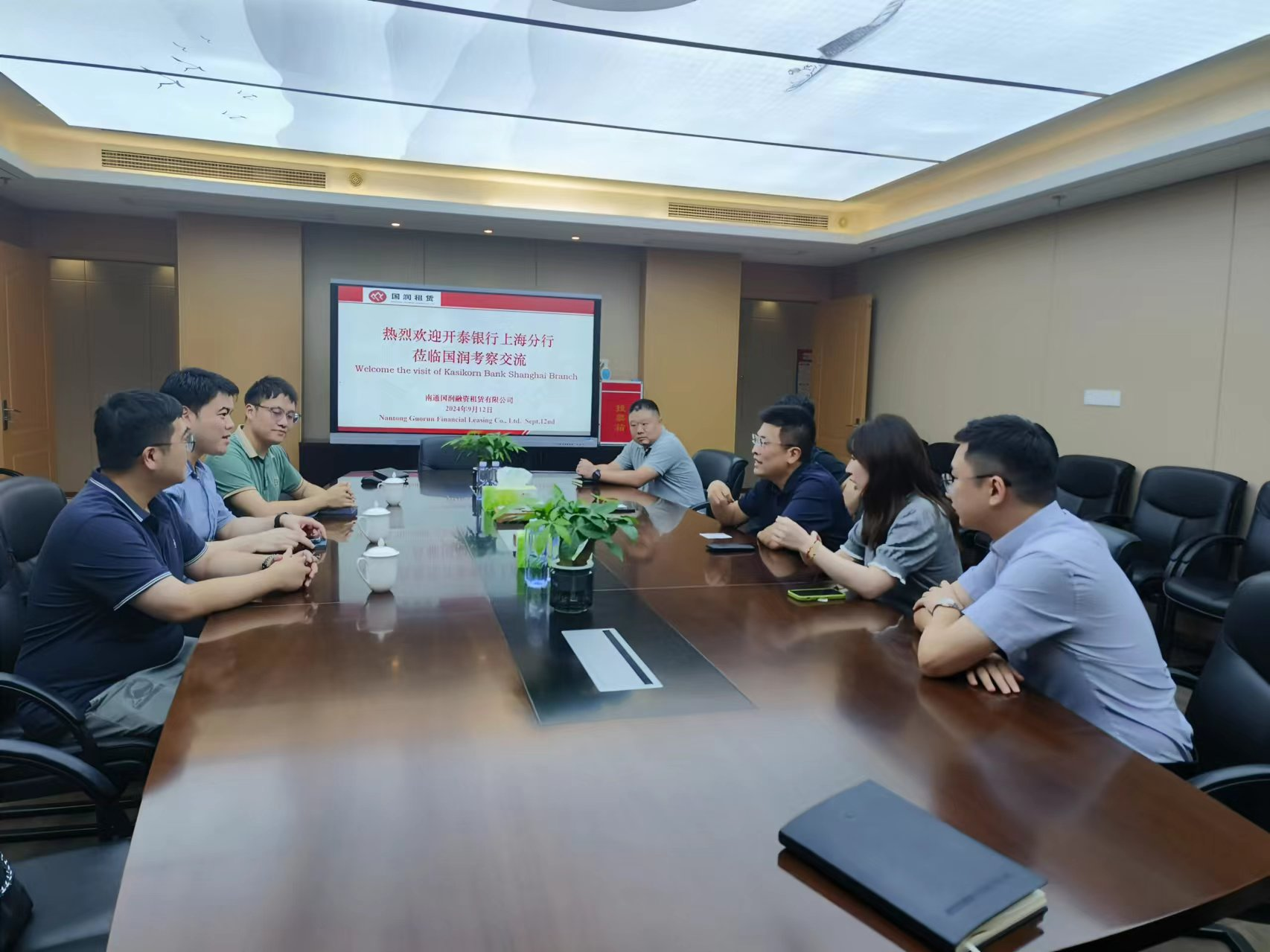 9月12日,開泰銀行上海分行行長Ukrit Archapairoj一行人到國潤租賃開展業(yè)務交流,國潤租賃陳大鵬及相關(guān)人員參加了交流座談。